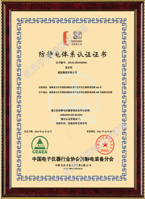 防静电体系认证证书-中文版