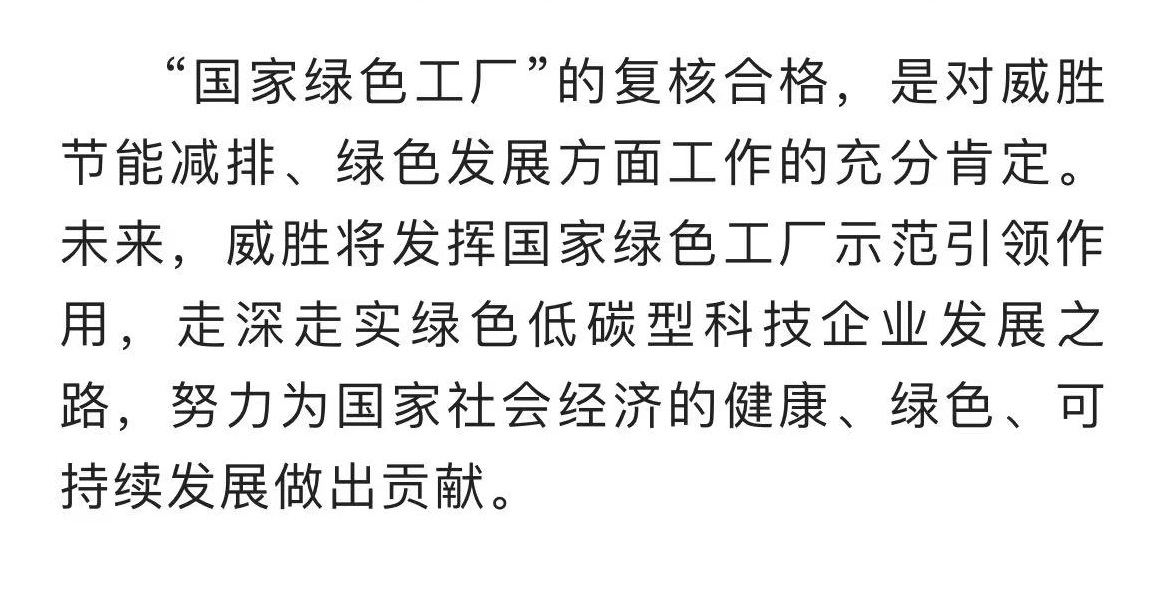 节能减排 绿色发展|威胜集团通过国家级绿色工厂复核