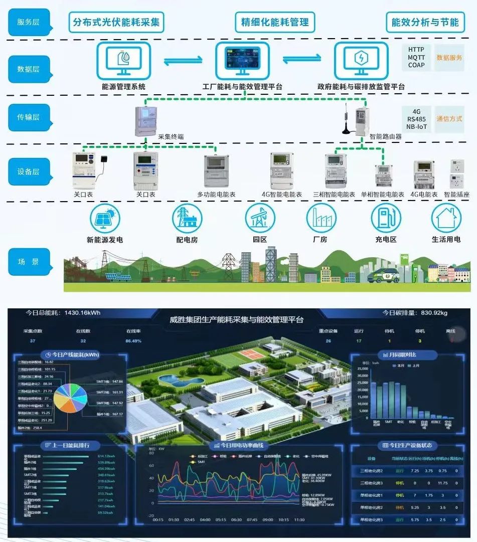 威胜集团有限公司针对石油化工行业高能耗的特点,以及能源管理与节能的需求,打造了高能耗企业能效管理解决方案,依托能效管理平台及配套设备,实现对石油化工企业的用电及能源消耗状况的全面监测,分析和评估。通过对能源消耗过程的信息化,可视化管理,优化企业生产用能过程,有效提升企业能源效率管理水平,助力企业双碳目标达成。