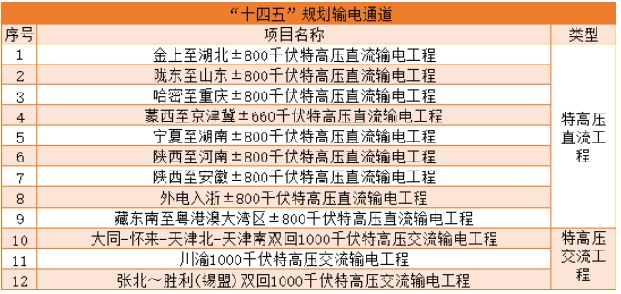 蒙西—京津冀、大同—天津南两条特高压于去年10月完成可研论证,目前各项目陆续发起了前期服务、选址规划、土地预审、配套工程等一系列招标,实际配套新能源项目指标则是今年重点关注方向。