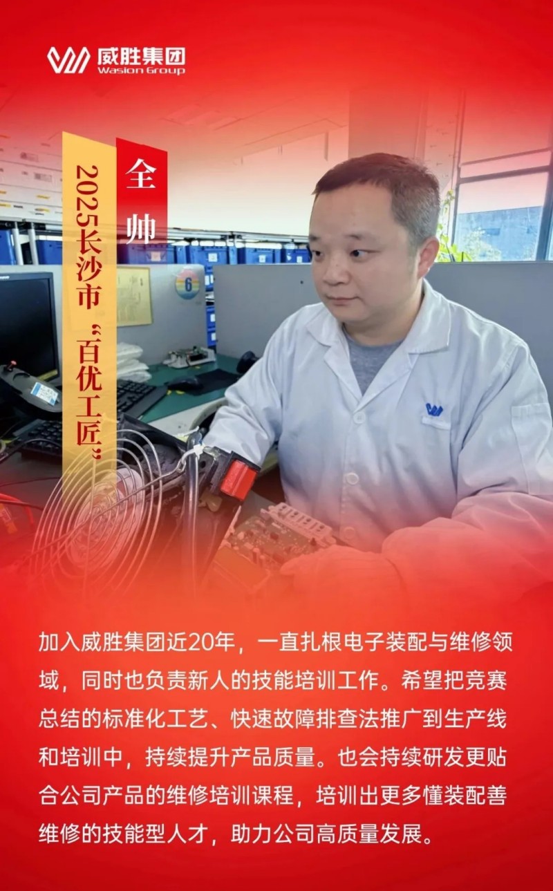 全帅-在长沙市“十行状元、百优工匠”职工职业技能竞赛电子装配赛项中取得第2名,荣获“百优工匠”称号!