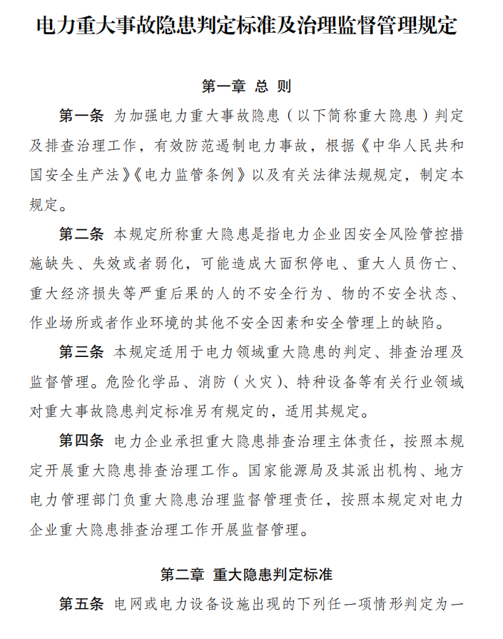 4月9日,国家发改委发布第41号中华人民共和国国家发展和改革委员会令,公布《电力重大事故隐患判定标准及治理监督管理规定》,实施时间:2026-07-01。