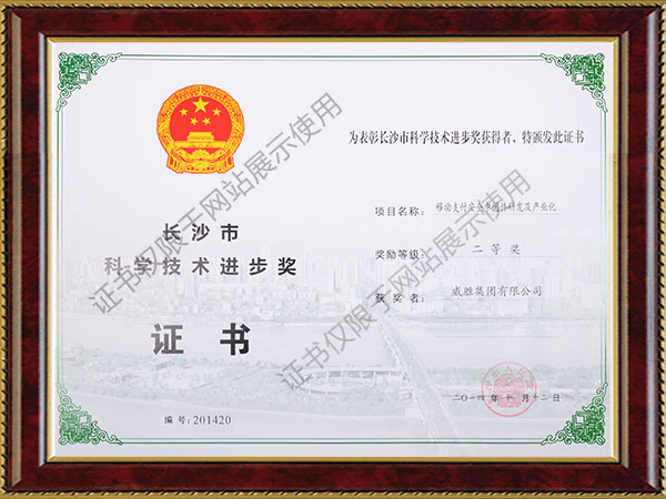威胜集团-移动支付安全中间件研发及产业化项目获得长沙市科学进步奖二等奖
