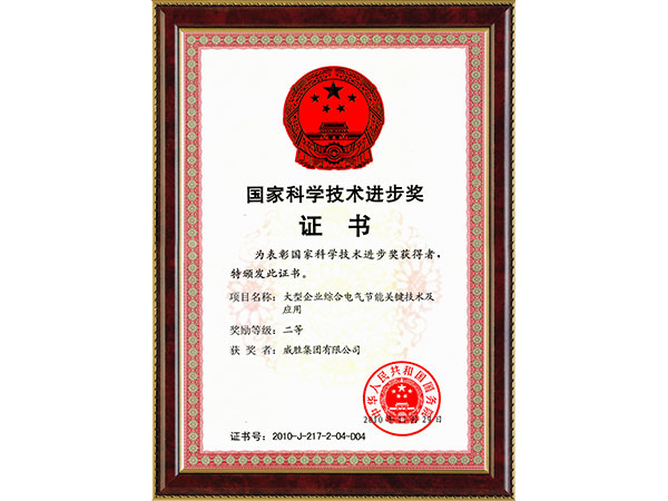 国家科学技术进步奖(大型企业综合电气节能关键技术及应用二等奖)