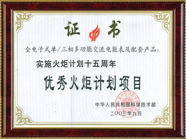 优秀火炬计划项目(全电子式三相多功能交流电能表及配套产品)