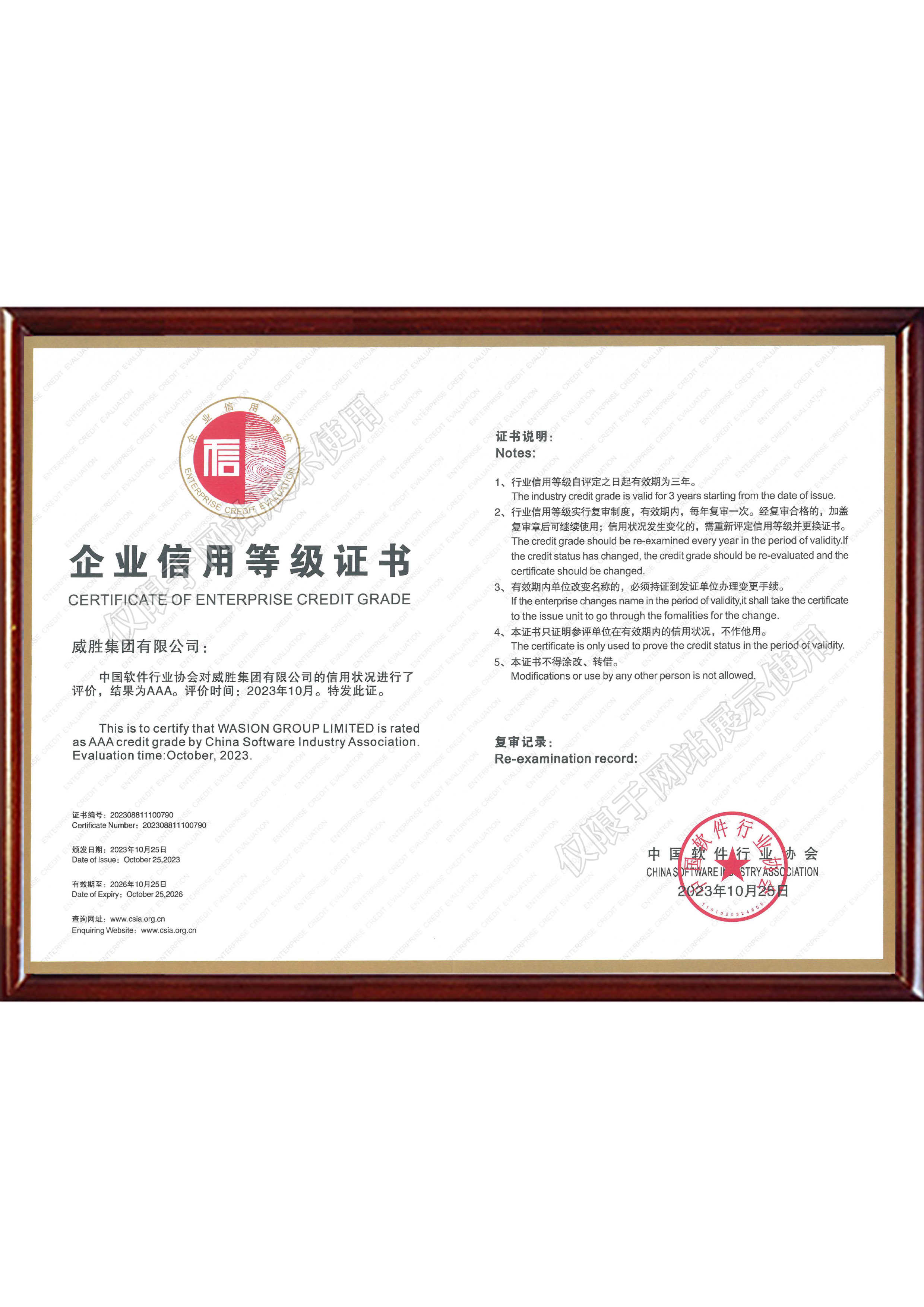 企业信用AAA等级证书(证书)