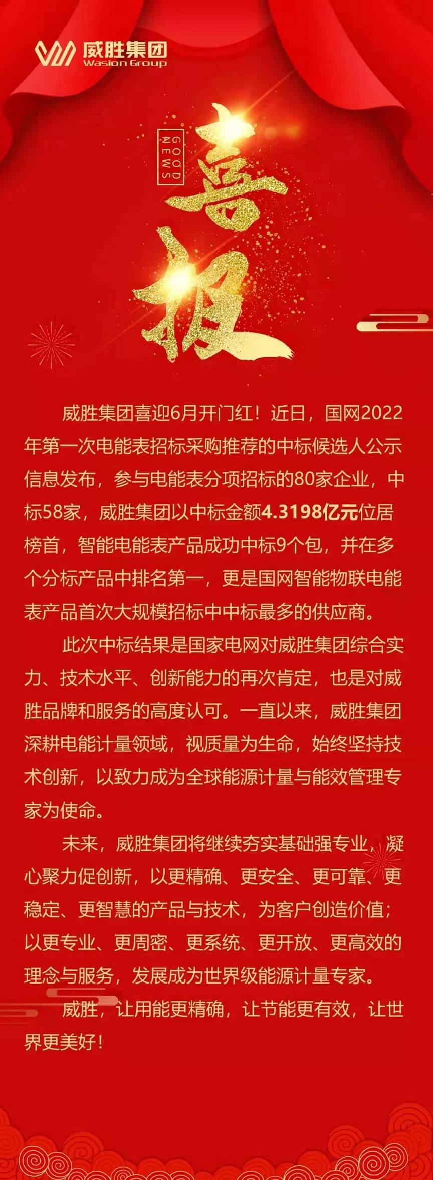 喜报|威胜集团中标金额4.3198亿元荣登榜首