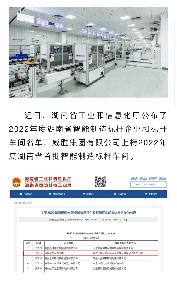 威胜集团有限公司上榜2022年度湖南省首批智能制造标杆车间