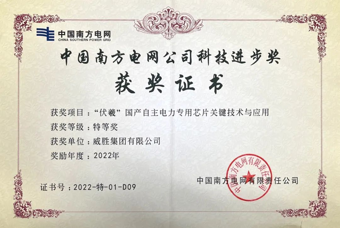 新年喜讯|威胜集团荣获中国南方电网公司科技进步奖特等奖。
