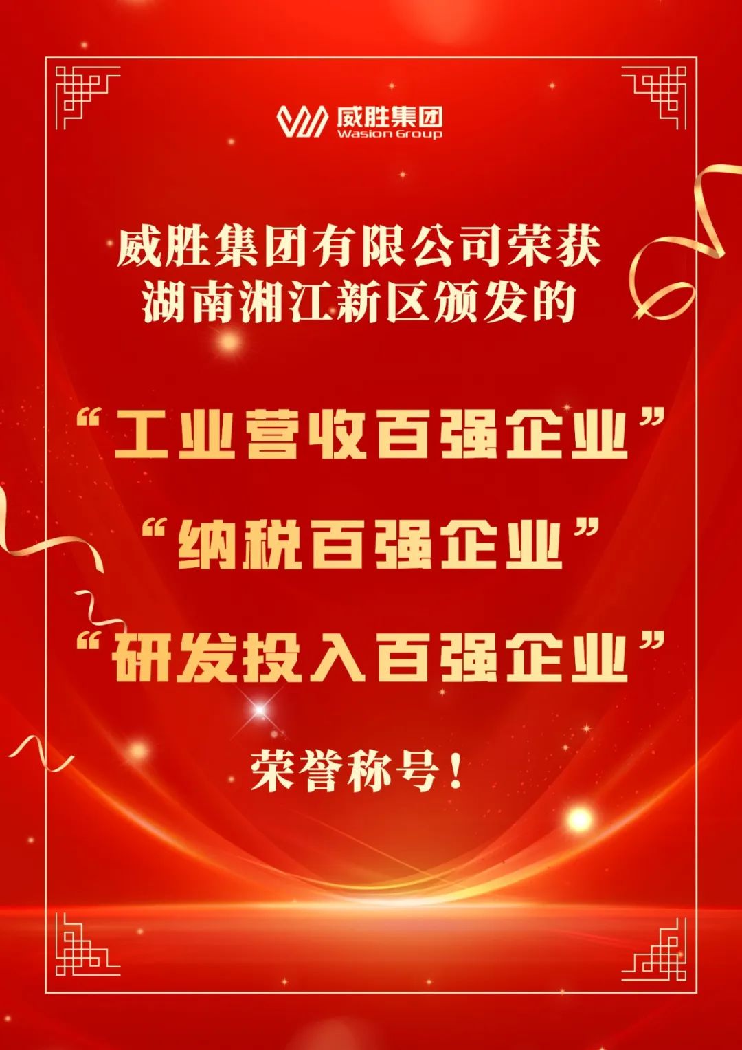 加快推进湖南湘江新区高质量发展大会|威胜集团荣获“工业营收百强企业”、“纳税百强企业”、“研发投入百强企业”多项荣誉称号!